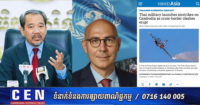 ភ្នំពេញ ៖ គណៈកម្មាធិការសិទ្ធិមនុស្សកម្ពុជា (គ.ស.ម.ក.) សូមជម្រាបជូនដល់បណ្តាសារព័ត៌មានជាតិ និងអន្តរជាតិ និងសាធារណជនទាំងអស់មេត្តាជ្រាបថា កងកម្លាំងយោធាថៃបានបន្តការឈ្លានពានមកលើ ប្រទេសកម្ពុជានៅខេត្តព្រះវិហារ បន្ទាយមានជ័យ ឧត្តរមានជ័យ និងពោធិ៍សាត់ ដោយប្រើអាវុធធនធ្ងន់ យន្តហោះចម្បាំង F-16 និងផ្សែងពុល បង្កឲ្យមានមនុស្សរបួសនិងស្លាប់ បំផ្លាញផ្ទះសម្បែង ប្រាសាទ មណ្ឌលសុខភាព និងសាលារៀនជាច្រើនត្រូវបានបិទ ហើយប្រជាពលរដ្ឋរាប់ម៉ឺននាក់ត្រូវភៀសខ្លួន។ អំពើឈ្លានពាននេះជាការរំលោភច្បាប់សិទ្ធិមនុស្ស ច្បាប់មនុស្សធម៌អន្តរជាតិ និងច្បាប់អន្តរជាតិ រួមទាំង បំពានសេចក្តីថ្លែងការណ៍រួមទីក្រុងគូឡាឡាំពួរវាងកម្ពុជានិង ក្នុងវត្តមានសាក្សីពីប្រធានាធិបតីសហ រដ្ឋអាមេរិក និងនាយករដ្ឋមន្ត្រីម៉ាឡេស៊ី។