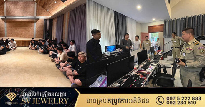 ភ្នំពេញ ៖ ជនជាតិថៃចំនួន៧៥នាក់ ក្នុងនោះស្ត្រី ៤៨នាក់ ត្រូវបានកម្លាំងសមត្ថកិច្ចចម្រុះកម្ពុជា ឃាត់ខ្លួន ក្នុងប្រតិបត្តិការ ចុះត្រួតពិនិត្យឆែកឆេរទីតាំងកសិដ្ឋានឈ្មោះ អមរៈ ស្ថិតក្នុងភូមិកោះក្របី១ សង្កាត់ព្រែកថ្មី ខណ្ឌច្បារអំពៅ រាជធានីភ្នំពេញ ក្រោយរបាយការណ៍ស្រាវជ្រាវ របស់សមត្ថកិច្ចបានបញ្ជាក់ការសង្ស័យថា មានការលបលួចប្រព្រឹត្តបទល្មើស ឆបោកតាមប្រព័ន្ធបច្ចេកវិទ្យា (Online Scam) ។