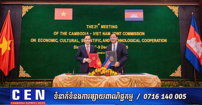 ជាលទ្ធផលប្រកបដោយផ្លែផ្កា ភាគីទាំងពីរ ក៏បានចុះហត្ថលេខាលើកំណត់ហេតុ នៃកិច្ចប្រជុំលើកទី២១ នៃគណៈកម្មការចម្រុះ កម្ពុជា-វៀតណាម ស្តីពីកិច្ចសហប្រតិបត្តិការសេដ្ឋកិច្ច វប្បធម៌ វិទ្យាសាស្ត្រ និងបច្ចេកវិទ្យា៕រក្សាសិទ្ធដោយ៖សុទ្ធលី