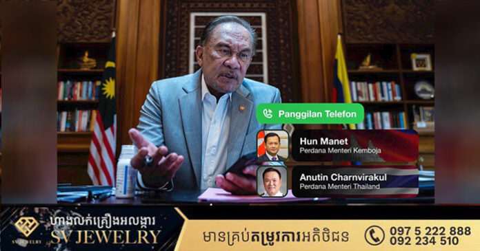 គូឡាឡាំពួ ៖ លោក អាន់វ៉ា អ៉ីប្រាហ៊ីម នាយករដ្ឋមន្ត្រីម៉ាឡេស៊ី បានបើកកិច្ចសន្ទនាតាមទូរស័ព្ទជាមួយនាយករដ្ឋមន្ត្រីកម្ពុជា និងថៃ ដើម្បីពិភាក្សាពីជម្លោះដែលកំពុងកើតឡើងនៅតំបន់ព្រំដែនរវាងប្រទេសទាំង២។