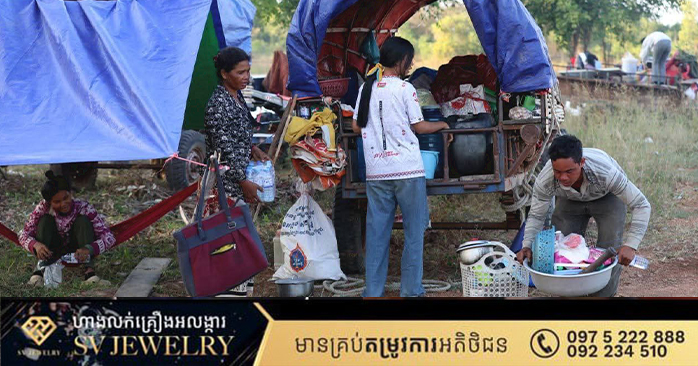 ២-ករណ៏ភៀសសឹក៖ ខេត្តព្រះវិហារ មានជនភៀសសឹកកើនដល់៦.៤៧៧គ្រួសារ ស្មើនឹងមនុស្ស ចំនួន២២.៣៩០នាក់។ ខេត្តឧត្តរមានជ័យ មានជនភៀសសឹកកើនដល់១១.៦០៧គ្រួសារ ស្មើនឹងមនុស្ស ចំនួន៣៩.៩៤៥នាក់។ ខេត្តបន្ទាយមានជ័យ មានជនភៀសសឹកកើនដល់២២.៧៩៩គ្រួសារ ស្មើនឹងមនុស្ស ចំនួន៨០.៤៤៧នាក់ (កុមារ២៤.៧០៨នាក់)។ ខេត្តបាត់ដំបង មានជនភៀសសឹកកើនដល់៨១៨គ្រួសារ ស្មើនឹងមនុស្សចំនួន៣.២៨៦នាក់។ ខេត្តពោធិ៍សាត់ មានជនភៀសសឹកកើនដល់៩០០គ្រួសារ ស្មើនឹង មនុស្សចំនួន៣,២២១នាក់។ ខេត្តកោះកុង មានប្រជាជនប្រមាណ៦០% នៅឃុំប៉ាក់ខ្លង ស្រុកមណ្ឌលសីមា និងក្នុងក្រុងខេមរភូមិន្ទមួយចំនួនទៀត បានចាកចេញទៅកាន់លំនៅឋានសាច់ញាតិតាមបណ្តាស្រុក និង ខេត្តដទៃ ព្រមទាំងរាជធានីភ្នំពេញ ខណៈពលរដ្ឋចំនួន៦៣នាក់ផ្សេងទៀត បានភៀសខ្លួនពីតំបន់ហានិភ័យ មកកាន់ក្រុងខេមរភូមិន្ទ។ នៅខេត្តសៀមរាប បានទទួលជនភៀសសឹកកើនដល់១៣.៥៥១គ្រួសារ ស្មើនឹង មនុស្សចំនួន៤៤.៥២៧នាក់។ សរុបចំនួនជនភៀសសឹកបានកើនដល់ជាង ៥ម៉ឺន ៦ពាន់គ្រួសារ ស្មើនឹងមនុស្ស ជាង១សែន ៩ម៉ឺននាក់។ រហូតមកដល់យប់នេះ នៅតែបន្តមានចលនាពលរដ្ឋភៀសសឹកគ្រប់មូលដ្ឋានខេត្ត ពាក់ព័ន្ធ។