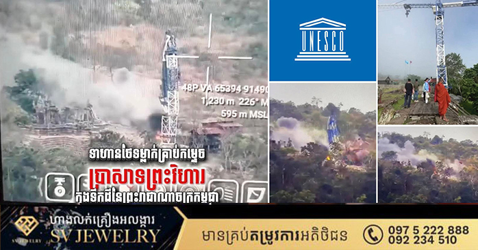 ភ្នំពេញ៖ អង្គការ UNESCO អំពាវនាវឱ្យមានការការពារជាបន្ទាន់នូវបេតិកភណ្ឌវប្បធម៌ក្នុងតំបន់ក្នុងគ្រប់ទម្រង់ ខណៈដែលថៃបានផ្លោងដាក់ប្រាសាទព្រះវិហារជាថ្មី ។