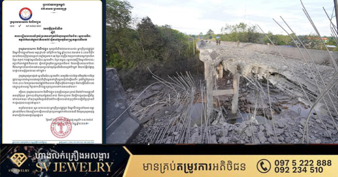 ក្រសួងសាធារណការ និងដឹកជញ្ជូន សូមជូនដំណឹងដល់សាធារណជន អ្នកប្រើប្រាស់ផ្លូវថ្នល់ និងអ្នកដឹកជញ្ជូនទាំងអស់ មេត្ត មេត្តាជ្រាបថា នៅថ្ងៃទី១៣ ខែធ្នូ ឆ្នាំ២០២៥ វេលាម៉ោង ៦:០២នាទីព្រឹក យោធាថៃបានប្រើប្រាស់យន្តហោះចម្បាំងប្រភេទ F-16 ចំនួន ២គ្រឿង វាយប្រហារដោយទម្លាក់គ្រាប់បែក ចំនួន ៣គ្រាប់ កាត់ផ្តាច់ស្ពានជ័យជំនះ (ស្ពានមេទឹក) ចំនួន ២ស្ពាន (ស្ពានបេតុងថ្មី និងស្ពានដែកចាស់) តភ្ជាប់កំណាត់ផ្លូវជាតិលេខ៥៥ ស្ថិតនៅក្នុងភូមិសាស្ត្រខេត្តពោធិ៍សាត់ ដែលទង្វើរបស់យោធាថៃនេះ គឺជាសកម្មភាពរំលោភបំពានដោយខុសច្បាប់យ៉ាងធ្ងន់ធ្ងរលើអធិបតេយ្យជាតិកម្ពុជា និងបានបំផ្លិចបំផ្លាញ ហេដ្ឋារចនាសម្ព័ន្ធសាធារណៈនៅកម្ពុជា។