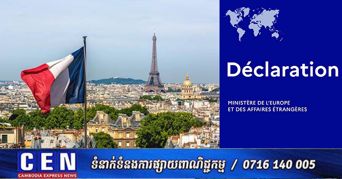 ភ្នំពេញ ៖ ក្រសួងអឺរ៉ុប និងការបរទេសបារាំង ថ្ងៃទី ១៤ ខែធ្នូ ឆ្នាំ ២០២៥ បានចេញសេចក្តីថ្លែងការណស្តីពីកម្ពុជា/ថៃ ការកើនឡើងនៃការប្រឈមមុខដាក់គ្នា។ នេះបើតាមការចេញផ្សាយព័ត៌មានរបស់ស្ថានទូតបារាំងប្រចាំកម្ពុជា នាថ្ងៃទី ១៤ ខែធ្នូ ឆ្នាំ ២០២៥ ។