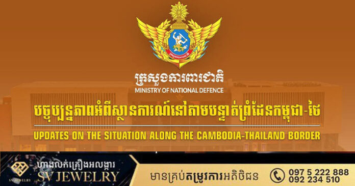ភ្នំពេញ ៖ ក្រសួងការពារជាតិបានចេញរបាយការណ៍សង្ខេបស្ថានការណ៍នៅតាមបន្ទាត់ព្រំដែនកម្ពុជា-ថៃ អំពីករណីកងកម្លាំងយោធាថៃបន្តការបាញ់ប្រហារ មកលើកងកម្លាំងកម្ពុជានៅយោធភូមិភាគទី៤ គិតចាប់ពីម៉ោង ៤:០០នាទីទៀបភ្លឺ រហូតដល់ម៉ោង ៩:១៨នាទីព្រឹក ថ្ងៃទី១៥ ខែធ្នូ ឆ្នាំ២០២៥