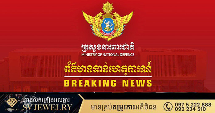 ក្រសួងការពារជាតិសូមជម្រាបជូននូវស្ថានការណ៍នៅតាមបន្ទាត់ព្រំដែនកម្ពុជា-ថៃ អំពី ករណីយោធាថៃបានបន្តធ្វើសកម្មភាពវាយប្រហារមកលើកម្ពុជា នៅយោធភូមិភាគទី៤ បានចូលជ្រៅក្នុងដែនអធិបតេយ្យភាពកម្ពុជា ក្នុងភូមិសាស្រ្ត ព្រំប្រទល់ស្រុកស្រីស្នំ ខេត្តសៀមរាប នាថ្ងៃទី១៥ ខែធ្នូ ឆ្នាំ២០២៥ នៅវេលាម៉ោង១០៖០០នាទីព្រឹក យោធាថៃបានពង្រីកសមរភូមិបើកការបាញ់ប្រហារយ៉ាងកំរោល ដោយប្រើប្រាស់យន្តហោះចម្បាំង F-16 ទម្លាក់គ្រាប់បែកចំនួន២គ្រាប់ ក្បែរជំរុំជនភៀសសឹក ក្នុងភូមិសាស្រ្ត ស្រុកស្រីស្នំ ខេត្តសៀមរាប៕ រក្សាសិទ្ធដោយ៖សុទ្ធលី