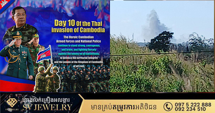 សូមគូសបញ្ជាក់ផងដែរថា គិតរហូតមកដល់ម៉ោងនេះ វីរកងទ័ព និងវីរនគរបាលកម្ពុជាបាននឹងកំពុង បន្តឈរជើងយ៉ាងរឹងមាំ ស្វាហាប់ មោះមុត និងនៅតែតស៊ូប្រយុទ្ធយ៉ាងស្វិតស្វាញតតាំងជាមួយសត្រូវ ឈ្លានពាននៅគ្រប់សមរភូមិទាំងអស់ ក្នុងការបំពេញតួនាទីរបស់ខ្លួន ដើម្បីការពារបូរណភាពទឹកដីរបស់ កម្ពុជា។