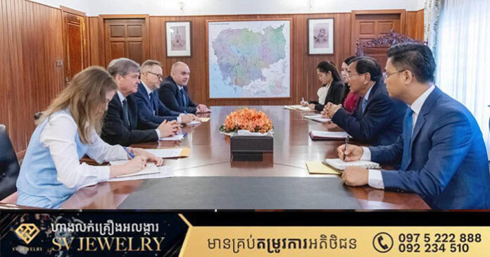 ភ្នំពេញ ៖ នៅព្រឹកថ្ងៃទី១៩ ខែធ្នូ ឆ្នាំ២០២៥ ឯកឧត្ដមឧបនាយករដ្ឋមន្ត្រី ប្រាក់ សុខុន រដ្ឋមន្ត្រីការបរទេស និងសហប្រតិបត្តិការអន្តរជាតិ បានផ្លាស់ប្តូរយោបល់ស្ដីអំពីការពង្រឹងទំនាក់ទំនងទ្វេភាគីកម្ពុជា-រុស្ស៊ី ជាមួយ ឯកឧត្តម Anatoly Borovik ឯកអគ្គរដ្ឋទូតសហព័ន្ធរុស្ស៊ីប្រចាំកម្ពុជា ក្នុងអំឡុងពេលឯកឧត្តមឯកអគ្គរដ្ឋទូត ជួបសម្ដែងការគួរសមនៅទីស្ដីការក្រសួង។