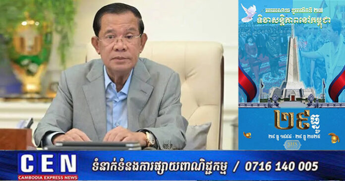 ភ្នំពេញ ៖ សម្តេចតេជោ ហ៊ុន សែន ប្រធានព្រឹទ្ធសភា បានមានប្រសាសន៍ថា នៅថ្ងៃទី២៩ ខែធ្នូ ឆ្នាំ២០២៥នេះ គឺជាខួប ២៧ឆ្នាំហើយ សម្រាប់ការអនុវត្តប្រកបដោយភាពជោគជ័យនូវនយោបាយឈ្នះ-ឈ្នះ ដែលដាក់ចេញដោយសម្តេចតេជោ ហ៊ុន សែន ក្នុងការបញ្ចប់សង្គ្រាមស៊ីវិលនៅក្នុងប្រទេសកម្ពុជា នាំមកនូវសុខសន្តិភាព និងការអភិវឌ្ឍន៍ពេញផ្ទៃប្រទេស និងអបអរសាទរ