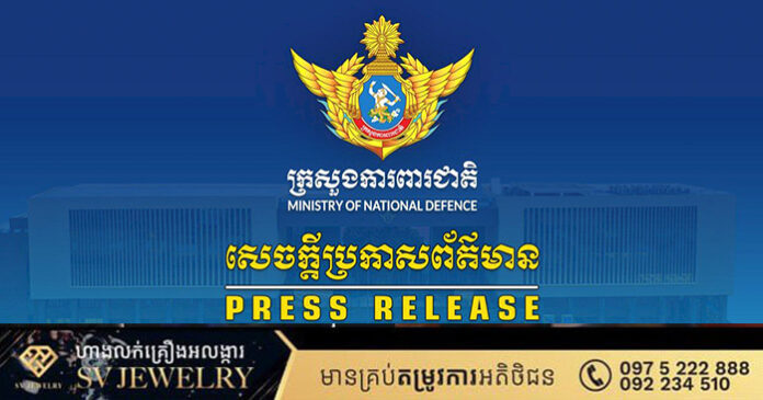 ភ្នំពេញ ៖ ក្រសួងការពារជាតិកម្ពុជា សូមធ្វើការបដិសេធចំពោះការផ្សព្វផ្សាយរបស់ភាគីថៃ នៅថ្ងៃទី២៩ ខែធ្នូ ឆ្នាំ២០២៥នេះ ដែលបានលើកឡើងថា ”ខ្លួនរកឃើញយានគ្មានមនុស្សបើក(UAV) ជាង ២៥០គ្រឿងហោះចេញពីកម្ពុជាចូលមករំលោភក្នុងដែនអធិបតេយ្យរបស់ថៃ”។