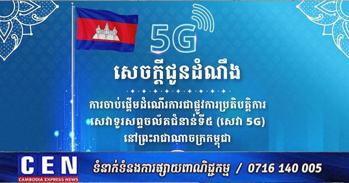 ក្រសួងប្រៃសណីយ៍និងទូរគមនាគមន៍ (ក.ប.ទ.) សូមជម្រាបជូនសាធារណជនទាំងអស់ជ្រាបថា កាលពីថ្ងៃទី៥ ខែធ្នូ ឆ្នាំ២០២៥ រាជរដ្ឋាភិបាលបានប្រកាសជាផ្លូវការដាក់ឱ្យដំណើរការប្រតិបត្តិការ សេវាទូរសព្ទចល័តជំនាន់ទី៥ ឬសេវា 5G នៅក្នុងព្រះរាជាណាចក្រកម្ពុជា ចាប់ពីខែមករា ឆ្នាំ២០២៦ តទៅ។ ក្នុងន័យនេះ ក.ប.ទ. បានសហការជាមួយគ្រប់ប្រតិបត្តិករទូរសព្ទចល័តធំៗទាំង ៣ គឺ ក្រុមហ៊ុន Cellcard (CamGSM) ក្រុមហ៊ុន Metfone (Viettel Cambodia) និងក្រុមហ៊ុន Smart (Smart Axiata) ជំរុញការសាងសង់ស្ថានីយអង់តែនទូរគមនាគមន៍និងបំពាក់ឧបករណ៍ផ្តល់សេវា 5G នៅតាមទីតាំងដូចមានផែនទីលម្អិតក្នុងឧបសម្ព័ន្ធជូនភ្ជាប់។
