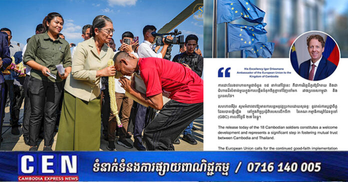 “ការដោះលែងទាហានកម្ពុជាចំនួន ១៨ នាក់នៅថ្ងៃនេះ គឺជាការវិវត្តដ៏គួរឱ្យរីករាយ និងជាជំហានដ៏សំខាន់មួយក្នុងការបង្កើនទំនុកចិត្តគ្នាទៅវិញទៅមក រវាងប្រទេសកម្ពុជា និងប្រទេសថៃ។