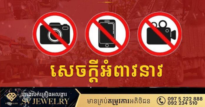 ភ្នំពេញ ៖ ក្រសួងការពារជាតិបានចេញសេចក្តីអំពាវនាវថា ដើម្បីចូលរួមរក្សាសុវត្ថិភាពកងកម្លាំងរបស់យើង ក៏ដូចជារក្សាការសម្ងាត់យោធា សូមបញ្ឈប់ការផ្សព្វផ្សាយជាបន្ទាន់នូវរាល់ ព័ត៌មាន, វីដេអូ ឬរូបភាពដែលអាចបង្ហាញពីសកម្មភាពប្រតិបត្តិការយោធា, ផែនទី, ការបង្ហាញពីការចល័ត ឬការដាក់ពង្រាយកងទ័ព, ទីតាំងឈរជើង, លេណដ្ឋាន (ត្រង់សេ), ជំរុំជម្រក, ការចល័តសព្វាវុធ, ផ្លូវផ្គត់ផ្គង់សម្ភារបរិក្ខារ ឬស្បៀងអាហារ របស់កងទ័ព តាមគ្រប់បណ្តាញទំនាក់ទំនងសង្គម ដូចជា Facebook, TikToK, Youtube ឬប្រព័ន្ធផ្សព្វផ្សាយផ្សេងៗទៀតជាដាច់ខាត៕ រក្សាសិទ្ធដោយ៖សុទ្ធលី