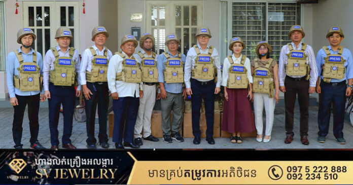 ភ្នំពេញ ៖ ក្លិបអ្នកកាសែតកម្ពុជា (ក.អ.ក) នៅថ្ងៃទី៥ ខែមករា ឆ្នាំ២០២៦ បានចែកអាវក្រោះ និងមួកសុវត្ថិភាពជាលើកទី២ ដល់អ្នកសារព័ត៌មានចំនួន ២១រូប មកពី ២០ស្ថាប័ន សរុបទាំងពីរលើកមានចំនួនជិត១០០ឈុតដើម្បីជួយការពារសុវត្ថិភាព ដល់អ្នកសារព័ត៌មានដែលកំពុងបំពេញការងារព័ត៌មាននៅតាមបណ្ដោយព្រំដែនកម្ពុជា-ថៃ និងទីកន្លែងងាយរងគ្រោះដទ ទៀតក្នុងតំបន់រងការវាយប្រហារពីទាហានថៃ។ អាវក្រោះ និងមួកសុវត្ថិភាពដែលមានស្លាកសញ្ញាអ្នកសារព័ត៌មាន ឬ PRESS ជាសញ្ញាដ៏ចាំបាច់បំផុតសម្រាប់អ្នកសារព័ត៌មាននៅពេលកំពុងបំពេញការងារ។