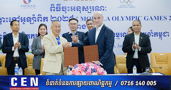 ភ្នំពេញ ៖ ស្ថានទូតសហរដ្ឋអាមេរិកប្រចាំកម្ពុជា បានចេញផ្សាយព័ត៌មានថា នៅថ្ងៃទី ១៤ ខែមករា លោកភារធារី Benjamin Chiang បានចូលរួមជាមួយសភាពាណិជ្ជកម្មកម្ពុជា សហរដ្ឋអាមេរិក នៅកម្ពុជា និងគណៈកម្មាធិការអូឡាំពិកជាតិកម្ពុជា នៅក្នុងពិធីចុះហត្ថលេខាជាផ្លូវការ លើអនុស្សរណៈនៃការយោគយល់គ្នា(MOU) ដើម្បីចាប់ផ្តើមកម្មវិធីរៃអង្គាសប្រាក់សម្រាប់ចូលរួមក្នុងការប្រកួតកីឡាអូឡាំពិកនៅទីក្រុង Los Angels ឆ្នាំ ២០២៨ ដែលជាព្រឹត្តការណ៍ធំមួយ ក្នុងការរៀបចំកីឡាករខ្មែរដើម្បីចូលរួមក្នុងព្រឹត្តិការណ៍កីឡាអូឡាំពិក និងកីឡាប៉ារ៉ាអូឡាំពិក ឆ្នាំ ២០២៨ នៅទីក្រុង Los Angeles។