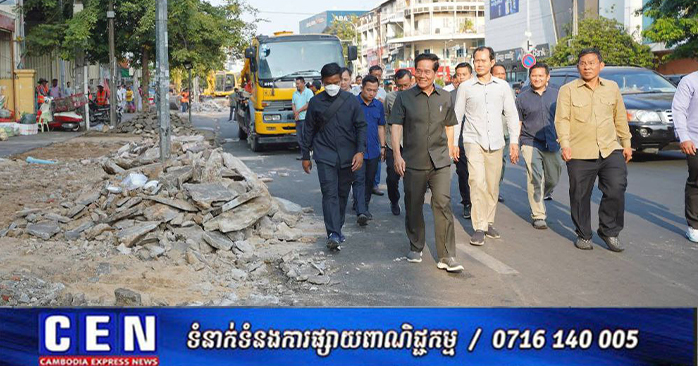 ឯកឧត្តមឃួង ស្រេង អភិបាលរាជធានីភ្នំពេញ បានថ្លែងបែបនេះក្នុងខណៈអញ្ជើញដឹកនាំក្រុមការងាររដ្ឋបាលរាជធានីភ្នំពេញ ចុះពិនិត្យសកម្មភាពអនុវត្តគម្រោងរៀបចំកែលម្អចិញ្ចេីមផ្លូវ តាមបណ្ដោយមហាវិថីម៉ៅសេទុង មហាវិថីព្រះមុន្នីរ៉េត ផ្លូវ២៣០ និងតំបន់ជុំវិញពាក់ព័ន្ធ ដើម្បីកែលម្អហេដ្ឋារចនាសម្ព័ន្ធជុំវិញនោះ សម្រាប់បម្រេីប្រយោជន៍សាធារណៈជារួមនារសៀលថ្ងៃទី១៨មករា២០២៦។