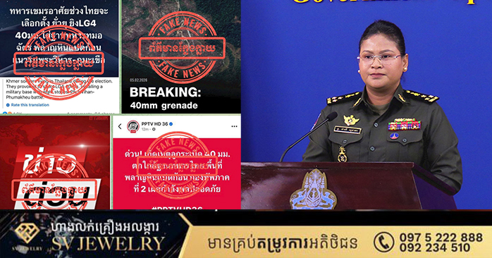 ភ្នំពេញ ៖ លោកជំទាវ ឧត្តមសេនីយ៍ឯក ម៉ាលី សុជាតា អ្នកនាំពាក្យក្រសួងការពារជាតិ នៃព្រះរាជាណាចក្រកម្ពុជា នៅថ្ងៃព្រហស្បតិ៍ ៣រោច ខែមាឃ ឆ្នាំម្សាញ់ សប្តស័ក ព.ស ២៥៦៩ ត្រូវនឹងថ្ងៃទី៥ ខែកុម្ភៈ ឆ្នាំ២០២៦ បានចេញសេចក្តីប្រកាសព័ត៌មានសូមជម្រាបជូនសាធារណជន អ្នកសារព័ត៌មានជាតិ និងអន្តរជាតិមេត្តាជ្រាបថា៖ នៅថ្ងៃទី៥ ខែកុម្ភៈ ឆ្នាំ២០២៦នេះ មានបណ្តាញសារព័ត៌មានថៃមួយចំនួនបានផ្សព្វផ្សាយថា « បន្ទាន់! កងទ័ពភូមិភាគទី២ បានរកឃើញថា ភាគីម្ខាងទៀតបានបាញ់គ្រាប់បែក ៤០មីលីម៉ែត្រ ធ្លាក់នៅក្បែរមូលដ្ឋានទាហាន Phlan Hin Pet Kon។»។