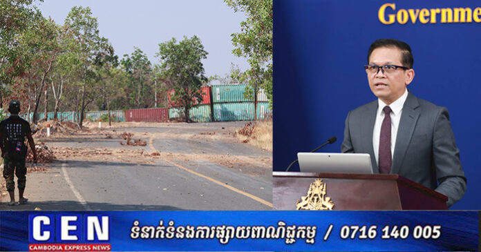 អ្នកនាំពាក្យរាជរដ្ឋាភិបាលសូមបញ្ជាក់ជូនថា រាជរដ្ឋាភិបាលកម្ពុជាមិនយល់ព្រមជាដាច់ខាតចំពោះសកម្មភាពរំលោភបំពានមកលើដែនអធិបតេយ្យភាពរបស់កម្ពុជា និងមានឆន្ទៈយ៉ាងមោះមុតក្នុងការដោះស្រាយបញ្ហាព្រំដែនដោយសន្តិវិធីតាមស្មារតីនៃសេចក្តីប្រកាសរួមចុះថ្ងៃទី២៧ ខែធ្នូ ឆ្នាំ ២០២៥ ត្រង់ចំណុចទី៣ ដែលភាគីទាំងពីរឯកភាពគ្នាប្រគល់តួនាទីឱ្យគណៈកម្មការចំរុះព្រំដែនបន្តអនុវត្តការងារវាស់វែង និងខ័ណ្ឌសីមាព្រំដែន ឱ្យបានឆាប់រហ័សបំផុត ស្របតាមកិច្ចព្រមព្រៀងដែលមានស្រាប់រវាងប្រទេសទាំងពីរ ដើម្បីសម្រេចបាននូវសន្តិភាពយូរអង្វែងតាមបណ្តោយព្រំដែន។