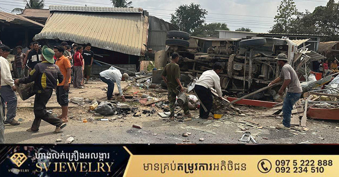 កំពង់ស្ពឺ ៖ ក្រោយកេីតហេតុគ្រោះថ្នាក់ចរាចរណ៍រថយន្ដបុកចូលតូបពលរដ្ឋលក់ដូរស្លាប់១នាក់ភ្លាម កំលាំងនគរបាលស្រុក ដឹកនាំដោយលោកវរសេនីយ៍ឯក ហ៊ុន សុខហុន អធិការនគរបាលស្រុកថ្ពង បានចុះដល់កន្លែងកេីតហេតុ នៅលើផ្លូវជាតិលេខ៤៤ ចន្លោះគីឡូម៉ែត្រ ៨០-៨១ ត្រង់ចំណុចភូមិអូរអង្គុំ ឃុំអមលាំង ស្រុកថ្ពង ខេត្តកំពង់ស្ពឺ ។