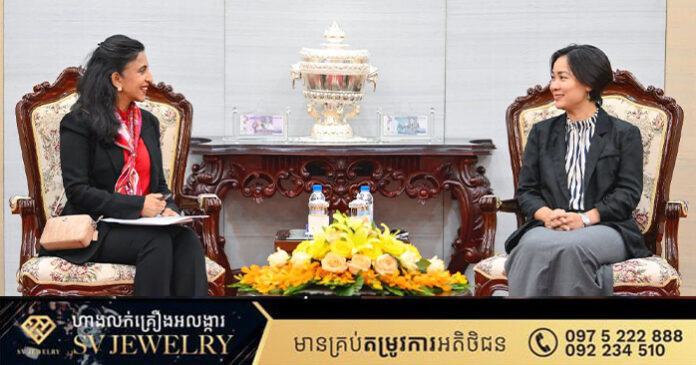 ភ្នំពេញ ៖ លោកជំទាវបណ្ឌិត ជា សិរី ទេសាភិបាល ធនាគារជាតិនៃកម្ពុជា បានទទួលជួបសម្តែងការគួរសម និងពិភាក្សាការងារ ជាមួយលោកស្រី Jasmin Siddiqi និងសហការី ក្នុងឱកាសលោកស្រីត្រូវបានតែងតាំងជានាយិកា ធនាគារអភិវឌ្ឍន៍អាស៊ីប្រចាំប្រទេសកម្ពុជា នារសៀលថ្ងៃទី៥ ខែកុម្ភៈ ឆ្នាំ២០២៦ នៅធនាគារជាតិនៃកម្ពុជា អគារវត្តភ្នំ។