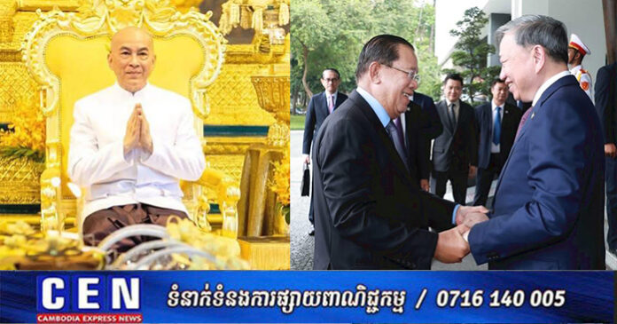 យោងតាមមាត្រា១១ថ្មី នៃច្បាប់រដ្ឋធម្មនុញ្ញ នៃព្រះរាជាណាចក្រកម្ពុជា ព្រះអង្គសព្វ ព្រះរាជហឫទ័យ ប្រោសព្រះរាជទាន សម្តេចអគ្គមហាសេនាបតីតេជោ ហ៊ុន សែន ប្រធានព្រឹទ្ធសភា នៃព្រះរាជាណាចក្រកម្ពុជា និងជាប្រធានក្រុមឧត្តមប្រឹក្សាផ្ទាល់ ព្រះមហាក្សត្រ ជួយទទួល ក្នុងព្រះបរមនាមជាប្រមុខរដ្ឋ នៃព្រះរាជាណាចក្រកម្ពុជា ស្វាគមន៍ឯកឧត្តម តូ ឡឺម អគ្គលេខា ធិការ នៃគណៈកម្មាធិការមជ្ឈិម គណបក្សកុម្មុយនីស្តវៀតណាម និងគណៈប្រតិភូជាន់ខ្ពស់ ក្នុងឱកាសអញ្ជើញមកបំពេញទស្សនកិច្ចផ្លូវរដ្ឋ នៅព្រះរាជាណាចក្រកម្ពុជា និងនៅក្នុងព្រះបរម រាជវាំង នៅថ្ងៃទី៦ ខែកុម្ភៈ ឆ្នាំ២០២៦ ៕ រក្សាសិទ្ធដោយ៖សុទ្ធលី