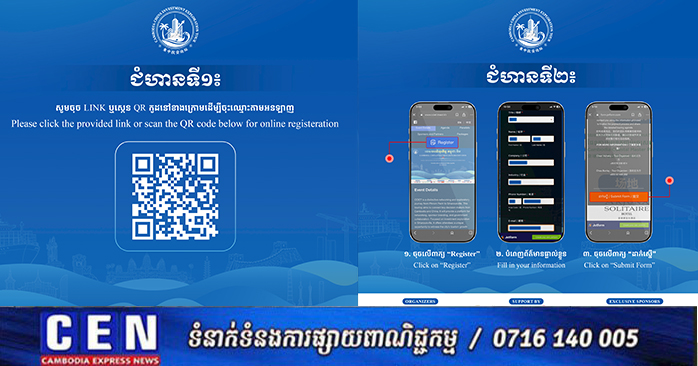 របៀបចុះឈ្មោះចូលរួមក្នុងព្រឹត្តិការណ៍ “ទេសចរណ៍ធុរកិច្ច កម្ពុជា-ចិន” នៅថ្ងៃទី១៨-១៩ ខែមីនា ឆ្នាំ២០២៦ ក្នុងក្រុងព្រះសីហនុ