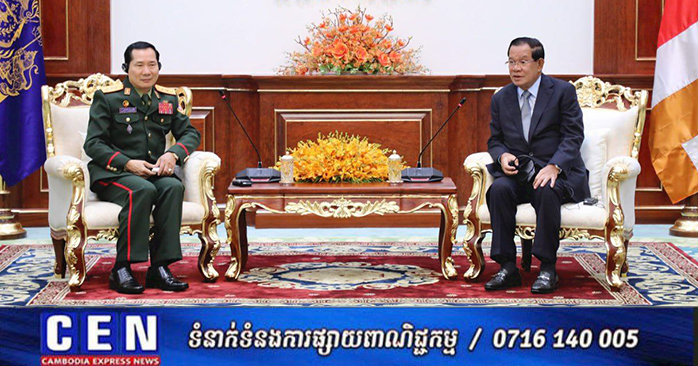 ភ្នំពេញ ៖ សម្តេចអគ្គមហាសេនាបតីតេជោ ហ៊ុន សែន ប្រធានព្រឹទ្ធសភានៃព្រះរាជាណាចក្រកម្ពុជា អនុញ្ញាតឱ្យ ឯកឧត្តម Saichay Kommasith អនុរដ្ឋមន្ត្រីក្រសួងការពារប្រទេស នៃសាធារណរដ្ឋប្រជាធិបតេយ្យប្រជាមានិតឡាវ ចូលជួបសម្តែងការគួរសម៕ រក្សាសិទ្ធដោយ៖សុទ្ធលី