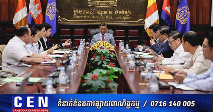 រាជធានីភ្នំពេញ៖ នាព្រឹកថ្ងៃទី១៧ ខែកុម្ភៈ ឆ្នាំ២០២៦ នៅទីស្តីការក្រសួង ឯកឧត្តមបណ្ឌិតសភាចារ្យ ហង់ជួន ណារ៉ុន ឧបនាយករដ្ឋមន្ត្រី រដ្ឋមន្ត្រីក្រសួងអប់រំ យុវជន និងកីឡា បានដឹកនាំកិច្ចប្រជុំស្តីពីការបញ្ជាក់សញ្ញាបត្រមកពីក្រៅប្រទេសក្នុងក្របខណ្ឌក្រសួងអប់រំ យុវជន និងកីឡា ដោយមានការចូលរួមពីសំណាក់ឯកឧត្តមលោកជំទាវថ្នាក់ដឹកនាំក្រសួងអប់រំ យុវជន និងកីឡា និងមន្ត្រីពាក់ព័ន្ធក្រោមឱវាទ។