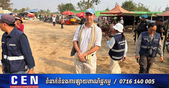 ក្នុងដំណើរទៅកាន់ខេត្តបន្ទាយមានជ័យ ដើម្បីស្វែងយល់អំពីផលប៉ះពាល់ក្រោយការប៉ះទង្គិចនៅតាមព្រំដែនកម្ពុជា-ថៃ នៅថ្ងៃទី២៣ ខែកុម្ភ: ឆ្នាំ ២០២៦ លោក Dominic Williams ឯកអគ្គរាជទូតអង់គ្លេសប្រចាំកម្ពុជា បានមានប្រសាសន៍ថា ថ្ងៃនេះខ្ញុំបានមកដល់ខេត្តបន្ទាយមានជ័យជាមួយក្រុមទូត និងក្រសួងការបរទេស និងសហប្រតិបត្តិការអន្តរជាតិ។ នេះជាដំណើរទស្សនកិច្ចលើកទីពីររបស់ខ្ញុំទៅកាន់ខេត្តបន្ទាយមានជ័យក្នុងខែកុម្ភៈនេះ។