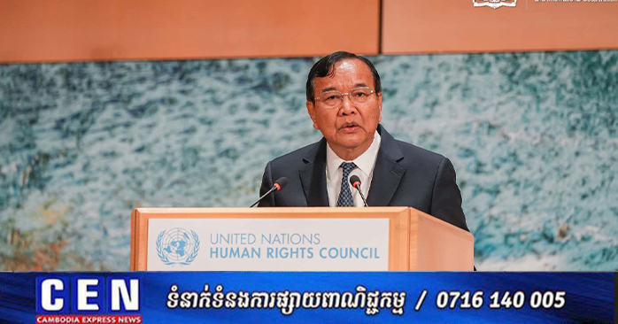 ប្រទេសស្វីស ៖ នៅថ្ងៃទី២៤ ខែកុម្ភៈ ឆ្នាំ២០២៦ ឯកឧត្តមឧបនាយករដ្ឋមន្ត្រី ប្រាក់ សុខុន រដ្ឋមន្ត្រីការបរទេស និងសហប្រតិបត្តិការអន្តរជាតិ បានអញ្ជើញឡើងថ្លែងបទអន្តរាគមន៍ ក្នុងសម័យប្រជុំ លើកទី៦១ នៃក្រុមប្រឹក្សាសិទ្ធិមនុស្ស របស់អង្គការសហប្រជាជាតិ នៅទីក្រុងហ្សឺណែវ ប្រទេសស្វីស។