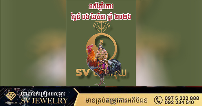 នៅថ្ងៃនេះ រាសីរបស់លោកអ្នកឡើង ខ្ពស់ត្រដែត។ លោកអ្នកនឹងមានលាភជ័យ និងសិរីសួស្តីចូលមកជិតខ្លួន។ រាល់ការខិតខំប្រឹងប្រែងពីមុនមក នឹងចាប់ផ្តើមហុចផលឱ្យឃើញនៅថ្ងៃនេះ ដែលធ្វើឱ្យលោកអ្នកមានមោទនភាពចំពោះខ្លួនឯងយ៉ាងខ្លាំង។