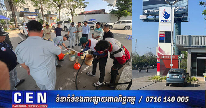 ភ្នំពេញ ៖ ដេប៉ូលក់សាំងយីហោ PEACE រងការផាកពិន័យ៤លានរៀលក្រោយមិនដាក់តម្លៃ និងលក់លើសតម្លៃជាង ៦០០០ពាន់រៀល នៅភូមិតាងួន សង្កាត់កាកាបទី១ ខណ្ឌពោធិ៍សែនជ័យ រាជធានីភ្នំពេញ។ ក្រុមមន្រ្តីជំនាញ និងអាជ្ញាធរ នៅថ្ងៃទី០៨ ខែមីនា ឆ្នាំ២០២៦ បានចុះទៅពិនិត្យជាក់ស្តែង និងបានរកឃើញបែបនេះមែន។