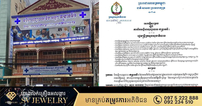 ភ្នំពេញ ៖ ក្រសួងសុខាភិបាល បានសម្រេចបិទមន្ទីរពហុព្យាបាល ឥន្រ្ទទេវី ១ ដែលមានទីតាំងនៅផ្ទះលេខ៦៥ ផ្លូវលេខ២៧៣ សង្កាត់ទួលសង្កែទី១ ខណ្ឌឫស្សីកែវ រាជធានីភ្នំពេញ ដោយមូលហេតុប្រព្រឹត្តខុសក្រមសីលធម៌វិជ្ជាជីវៈធ្ងន់ធ្ងរ ដែលបណ្តាលឱ្យប៉ះពាល់ដល់លទ្ធផលនៃការបម្រើសេវាពិនិត្យព្យាបាលជូនដល់ប្រជាជនមិនបានសមរម្យ។