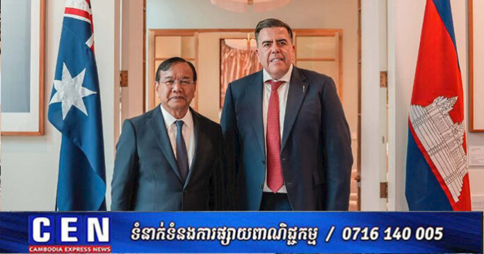 នៅព្រឹកថ្ងៃទី១៦ ខែមីនា ឆ្នាំ២០២៦ ឯកឧត្តមឧបនាយករដ្ឋមន្ត្រី ប្រាក់ សុខុន រដ្ឋមន្ត្រីការបរទេស និងសហប្រតិបត្តិការអន្តរជាតិ នៃព្រះរាជាណាចក្រកម្ពុជា បានអញ្ជើញចូលជួបសម្តែងការគួរសមចំពោះ ឯកឧត្តម Milton Dick ប្រធានរដ្ឋសភាអូស្ត្រាលី។