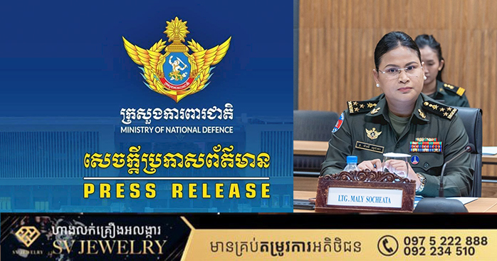 ភ្នំពេញ ៖ លោកជំទាវ ឧត្តមសេនីយ៍ឯក ម៉ាលី សុជាតា អ្នកនាំពាក្យក្រសួងការពារជាតិ នៃព្រះរាជាណាចក្រកម្ពុជា នៅថ្ងៃអង្គារ ៦កើត ខែចេត្រ ឆ្នាំម្សាញ់ សប្តស័ក ព.ស ២៥៦៩ ត្រូវនឹងថ្ងៃទី២៤ ខែមីនា ឆ្នាំ២០២៦សូមជម្រាបជូនសាធារណជន អ្នកសារព័ត៌មានជាតិ និងអន្តរជាតិមេត្តាជ្រាបថា៖ នៅថ្ងៃទី២៤ ខែមីនា ឆ្នាំ២០២៦នេះ សារព័ត៌មានថៃ បានចុះផ្សាយដោយដកស្រង់សម្តីរបស់ប្រធានចារកម្មថៃដែលចោទមកលើកម្ពុជាត្រៀមសម្រាប់ការផ្ទុះអាវុធលើកទី៣ គឺមិនត្រឹមត្រូវ និងជាការអះអាងដោយគ្មានមូលដ្ឋាន។ កងយោធពលខេមរភូមិន្ទ ប្រកាន់ខ្ជាប់យ៉ាងម៉ឺងម៉ាត់នូវការគោរពសេចក្តីប្រកាសរួមនៃកិច្ចប្រជុំពិសេសលើកទី៣ នៃគណៈកម្មាធិការព្រំដែនទូទៅកម្ពុជា-ថៃ (GBC) ថ្ងៃទី២៧ ខែធ្នូ ឆ្នាំ២០២៥, សេចក្តីថ្លែងការណ៍រួមស្តីពីកិច្ចព្រមព្រៀងសន្តិភាពរវាងកម្ពុជានិងថៃ ថ្ងៃទី២៦ ខែតុលា ឆ្នាំ២០២៥ និងកិច្ចព្រមព្រៀងពាក់ព័ន្ធផ្សេងទៀត ព្រមទាំងអនុវត្តតាមបទបញ្ជារបស់រាជរដ្ឋាភិបាលកម្ពុជា ក្នុងការរក្សាសន្តិភាព ស្ថិរភាព និងសន្តិសុខតាមបណ្តោយព្រំដែន។
