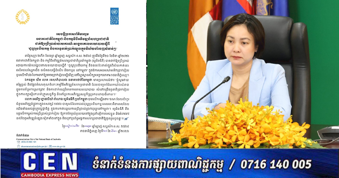 រាជធានីភ្នំពេញ៖ ធនាគារជាតិនៃកម្ពុជា និងកម្មវិធីអភិវឌ្ឍន៍សហប្រជាជាតិ បានចេញសេចក្ដីប្រកាសព័ត៌មានរួម