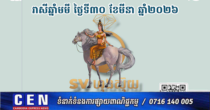 ក្នុងថ្ងៃនេះ រាសីរបស់លោកអ្នកឡើងខ្ពស់ត្រដែត។ ជាថ្ងៃដែលលោកអ្នកមានថាមពលខ្លាំងក្លា និងមានសន្ទុះទៅមុខជានិច្ច។ រាល់ការតាំងចិត្ត និងការខិតខំប្រឹងប្រែងរបស់លោកអ្នកនឹងទទួលបានការតបស្នងមកវិញយ៉ាងសមប្រកប ហើយលោកអ្នកនឹងមានអ្នកមានបុណ្យ ឬមនុស្សខ្ពង់ខ្ពស់ចាំជួយជ្រោមជ្រែងនៅពីក្រោយខ្នង។