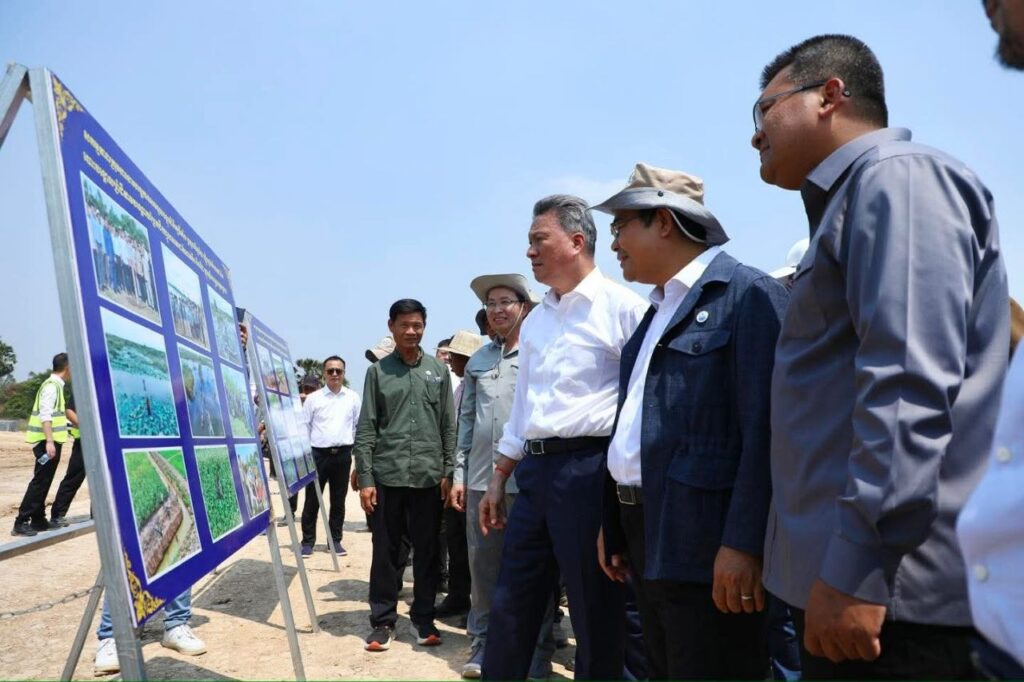 ខេត្តតាកែវ៖ នារសៀលថ្ងៃព្រហស្បតិ៍ ទី២ ខែមេសា ឆ្នាំ២០២៦ ឯកឧត្តម ប៉េង ពោធិ៍នា រដ្ឋមន្រ្តីក្រសួងសាធារណការ និងដឹកជញ្ជូន និងជាប្រធានលេខាធិការដ្ឋាន គណៈកម្មាធិការពិសេស ដើម្បីជំរុញការរៀបចំ និងការអនុវត្តគម្រោងព្រែកជីកហ្វូណនតេជោ បានអមដំណើរ ឯកឧត្តម ស៊ុន ចាន់ថុល ឧបនាយករដ្ឋមន្ត្រី អនុប្រធានទី១ ក្រុមប្រឹក្សាអភិវឌ្ឍន៍កម្ពុជា (ក.អ.ក.) និងជាអនុប្រធានអចិន្ត្រៃយ៍ គណៈកម្មាធិការពិសេស ដើម្បីជំរុញការរៀបចំ និងការអនុវត្តគម្រោងព្រែកជីកហ្វូណនតេជោ ចុះពិនិត្យផ្ទៀងផ្ទាត់ ទីតាំងត្រៀម រៀបចំពិធីបើកការដ្ឋានសាងសង់គម្រោងគ្រប់គ្រងធនធានទឹកចម្រុះហ្វូណនតេជោ កំណាត់ទី២