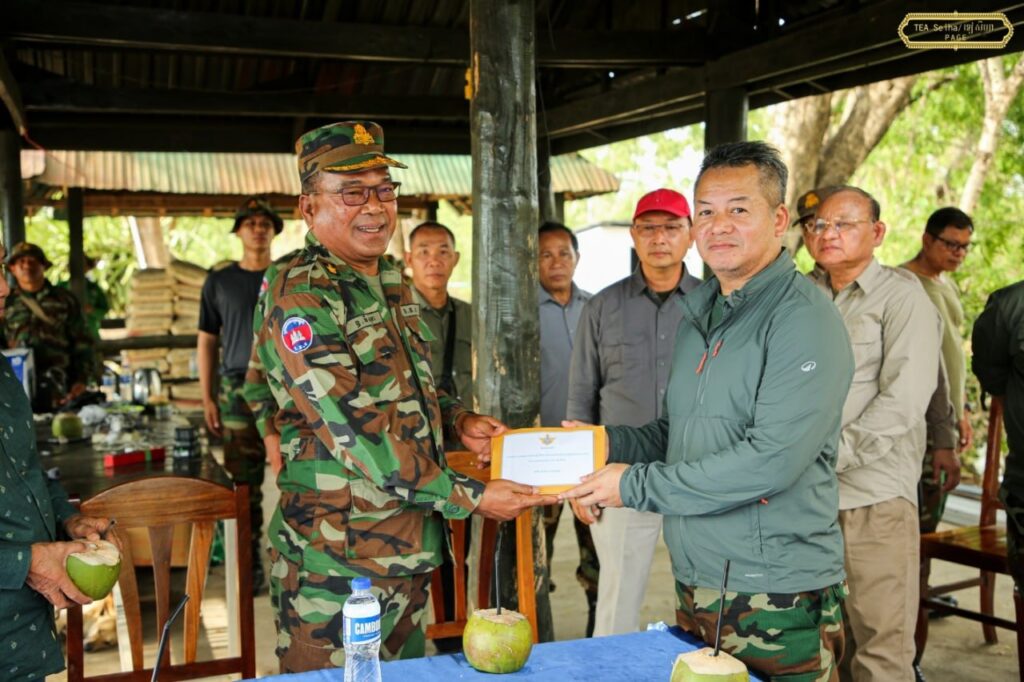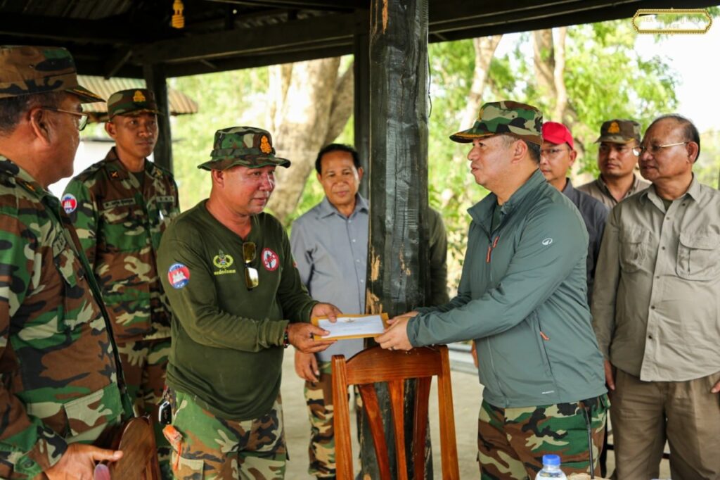 ថ្ងៃសៅរ៍ ២រោច ខែចេត្រ ឆ្នាំម្សាញ់ សប្តស័ក ពុទ្ធសករាជ ២៥៦៩ ត្រូវនឹងថ្ងៃទី៤ ខែមេសា ឆ្នាំ២០២៦ ឯកឧត្តម នាយឧត្តមសេនីយ៍ ទៀ សីហា ឧបនាយករដ្ឋមន្ត្រី រដ្ឋមន្ត្រីក្រសួងការពារជាតិ បាន ចុះសួរសុខទុក្ខ និងជូនពរជ័យសិរីសួស្តីដល់យោធិនដែលកំពុងបំពេញបេសកកម្មដ៏ឧត្តុង្គឧត្តមក្នុងការការពារបូរណភាពទឹកដី នៅសមរភូមិមុខតាមបណ្តោយព្រំដែនកម្ពុជា-ថៃ នៅទិសយោធភូមិភាគទី៥ ក្នុងភូមិសាស្រ្តខេត្តបន្ទាយមានជ័យ ខេត្តបាត់ដំបង ក្នុងឱកាសនៃបុណ្យចូលឆ្នាំថ្មី ប្រពៃណីជាតិ ឆ្នាំមមី អដ្ឋស័ក ពុទ្ធសករាជ ២៥៧០ ដែលនឹងឈានមកដល់នៅពេលខាងមុខ។