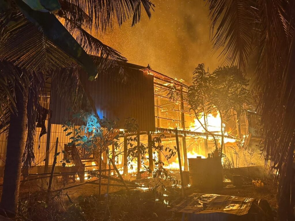 ខេត្តត្បូងឃ្មុំ: ស្របពេលដែលមនុស្សកំពុងតែដេកលង់លក់ស្រួលលុះដល់វេលាយប់ទៀបភ្លឺស្រាប់តែមានអគ្គីភ័យឆាបឆេះជាអណ្ដាតភ្លើងក្រហមច្រាលទៅលើអាកាសព្រមទាំងភ្ញាក់ផ្អើលពេញភូមិទី៦ ឃុំរកាខ្នុរ ស្រុកក្រូចឆ្មារ