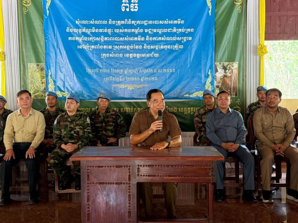 (ឧត្តរមានជ័យ) ថ្ងៃទី០៤ ខែមេសា ឆ្នាំ២០២៦ ឯកឧត្តមបណ្ឌិត លី ធុជ ទេសរដ្ឋមន្រ្តី អនុប្រធានទី១ អាជ្ញាធរមីន បានអញ្ជើញចុះពិនិត្យសកម្មភាពបោសសម្អាតមីនរបស់មជ្ឈមណ្ឌលជាតិគ្រប់គ្រងកងកម្លាំងរក្សាសន្តិភាព បោសសម្អាតមីន និងកាកសំណល់សង្រ្គាម (NPMEC) ដែលគាំទ្រគម្រោងដោយមូលនិធិរបស់រាជរដ្ឋាភិបាលកម្ពុជា និងជួបសំណេះសំណាលជាមួយបងប្អូនប្រជាពលរដ្ឋ ស្ថិតក្នុងស្រុកអង្លង់វែង និងក្រុងសំរោង ខេត្តឧត្តរមានជ័យ។