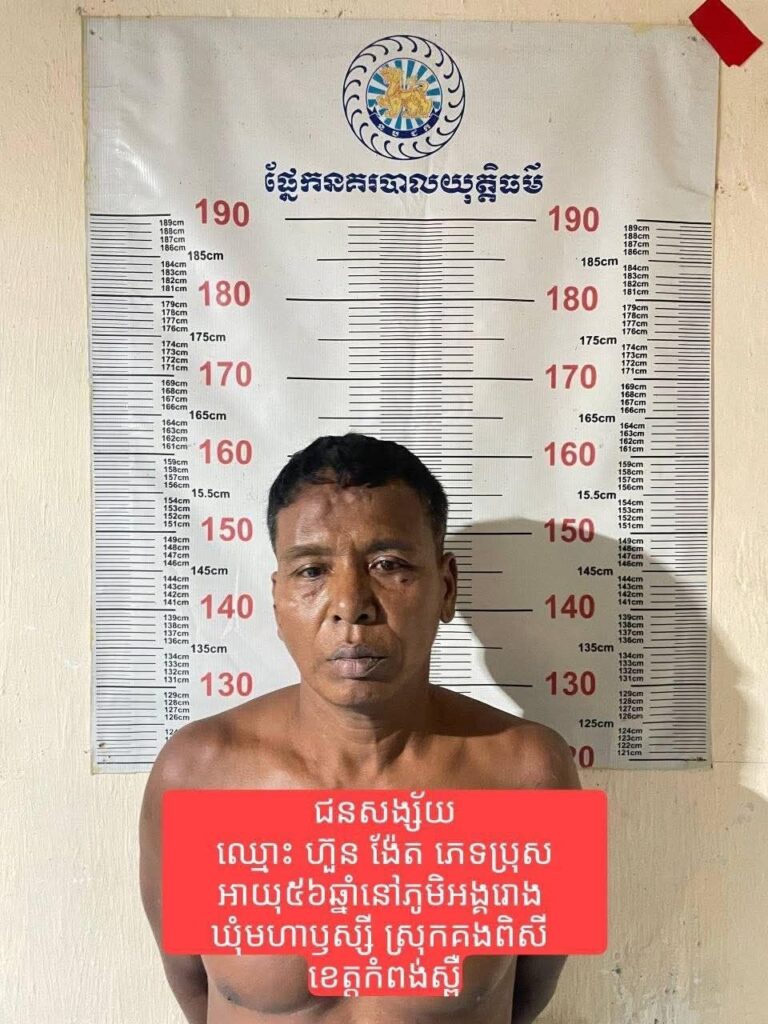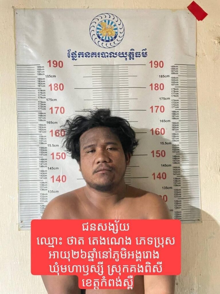 កំពង់ស្ពឺ៖ ដោយទទួលបានបញ្ជាដឹកនាំដ៏ខ្ពង់ខ្ពស់ពីលោកឧត្ដមសេនីយ៍ទោ ឃឹម សុកខៃ ស្នងការនគរបាលខេត្ដកំពង់ស្ពឺ កំលាំងនគរបាល ដឹកនាំដោយលោកវរសេនីយ៍ឯក យ៉ាង សុខលី អធិការនគរបាលស្រុកគងពិសី បានធ្វេីការសហការជាមួយកំលាំងនគរបាលស្នងការដ្ឋាននគរបាលខេត្ដព្រៃវែង ឃាត់ខ្លួនបក្ខពួកមុខសញ្ញា(អ្នកទទួលផលចោរកម្ម)ទិញរថយន្ដដែលចោរបានលួចយកមកពីខេត្ដព្រៃវែង រថយន្ដ ម៉ាក Hyundai ទម្ងន់ ២,៥តោន ដែលទទួលទិញពីជនល្មើស ក្នុងតម្លៃ ១៦០០ដុល្លារ ហើយគាត់បានលក់បន្ត២៣០០ដុល្លាររថយន្ដគ្មានឯកសារច្បាប់ដេីម នៅចំណុចភូមិអង្គរោង ឃុំមហាឬស្សី ស្រុកគងពិសី ខេត្ដកំពង់ស្ពឺ កាលពីថៃ្ងទី៤ ខែមេសា ឆ្នាំ២០២៦ ។