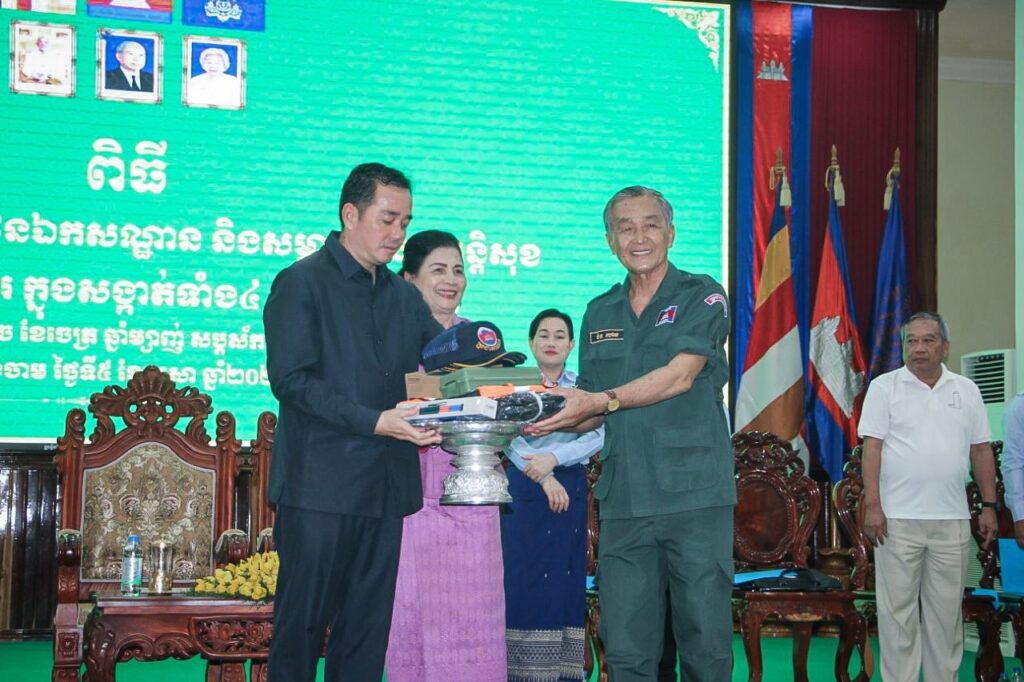 ឯកឧត្តមអភិបាលខេត្តមានប្រសាសន៍បន្តថា ក្នុងនាមឯកឧត្តមសន្តិបណ្ឌិតនេត សាវឿន ប្រធានក្រុមការងាររាជរដ្ឋាភិបាលចុះមូលដ្ឋានខេត្តកំពង់ចាមគឺប្រយោជន៍ឲ្យប្រជាការពារធ្វើយ៉ាងណារក្សានៅភាពសុខសាន្តជូនដល់ភ្ញៀវជាតិនិងអន្តរជាតិ។គួររំលឹកថានៅចុងឆ្នាំ២០២៥ ក្រោយមានបញ្ហាវិវាទព្រំដែនកម្ពុជា-ថៃ បានធ្វើឲ្យបងប្អូនប្រជាពលរដ្ឋភៀសសឹក មកកាន់ខេត្តកំពង់ចាមចំនួនពីលើកដែលមានរហូតដល់ទៅជាង៩០០០គ្រួសារក្នុងនោះក៏មានសាច់ញាតិវីរៈយុទ្ធជនជួរមុខ
