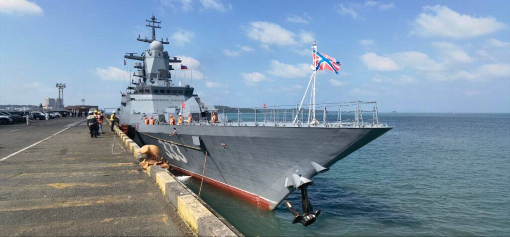 ព្រះសីហនុ៖ វេលាម៉ោង០៩និង១០នាទីព្រឹក ថ្ងៃចន្ទ ទី៦ ខែមេសា ឆ្នាំ២០២៦ នាវាកងស្វ័យការពារជើងទឹកសហពន្ធ័រុស្សី ចំនួន០២គ្រឿង បានចូលសំចតនៅកំពង់ផែស្វយ័តក្រុងព្រះសីហនុ ប្រកបដោយសុខសុវត្ថិភាព ដើម្បីបំពេញទស្សនកិច្ចជាផ្លូវការ រយ:ពេលចំនួន ០៣ថ្ងៃ ចាប់ពីថ្ងៃទី៦-៨ ខែមេសា ឆ្នាំ២០២៦។