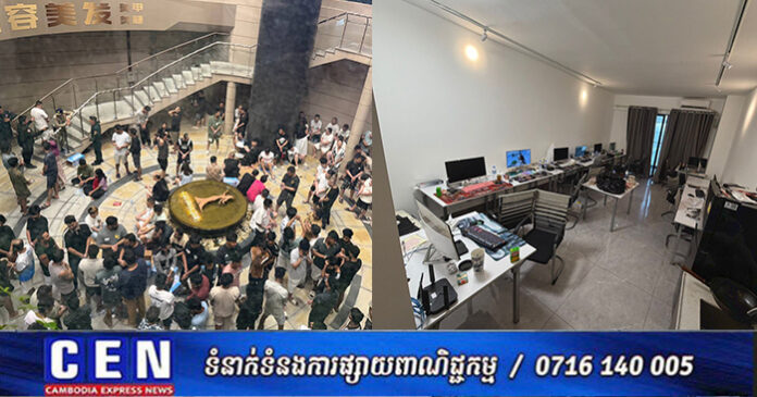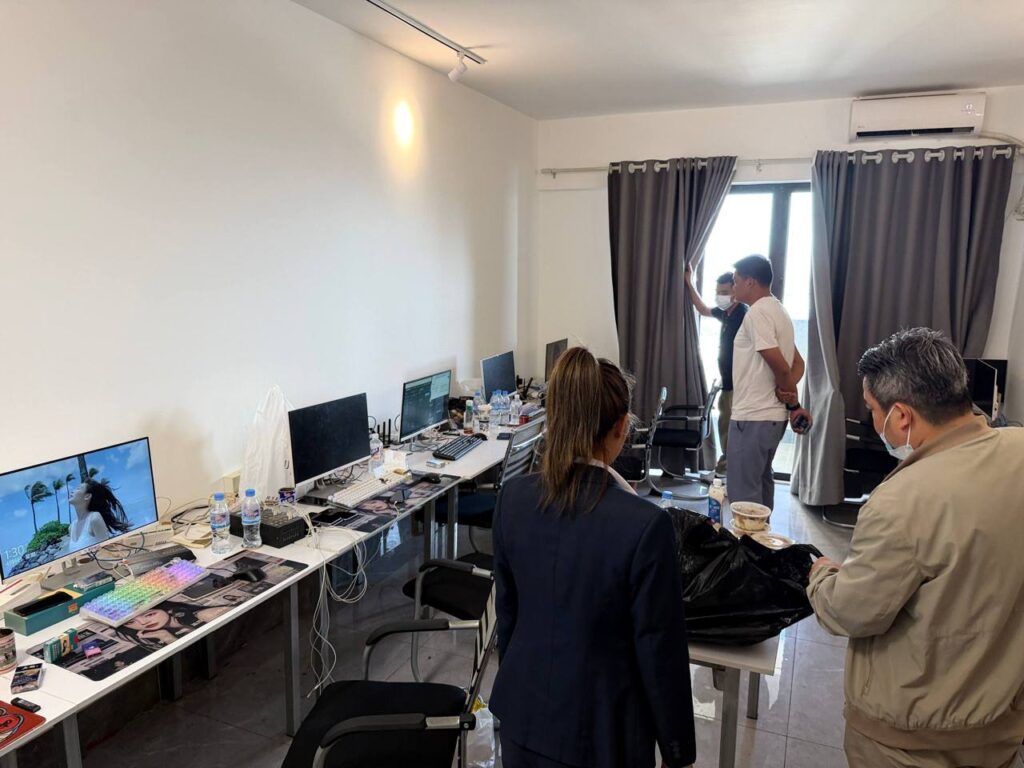 ភ្នំពេញ៖ កម្លាំងចម្រុះរាជធានីភ្នំពេញ បានបើកប្រតិបត្តិការចុះឆែកឆេរ ទីតាំងសង្ស័យប្រព្រឹត្តអំពើឆបោកតាមប្រព័ន្ធបច្ចេកវិទ្យា (Online Scams) ស្ថិតនៅទីតាំង ខុនដូ ភ្នំពេញកាឡាក់សុីហ្គាដេន ភូមិបន្លាស្អិត សង្កាត់ឃ្មួញ ខណ្ឌសែនសុខ រាជធានីភ្នំពេញ នាថ្ងៃទី៦ ខែមេសា ឆ្នាំ២០២៦ ដោយឃាត់ខ្លួនជនបរទេសចំនួន ២១៨នាក់។