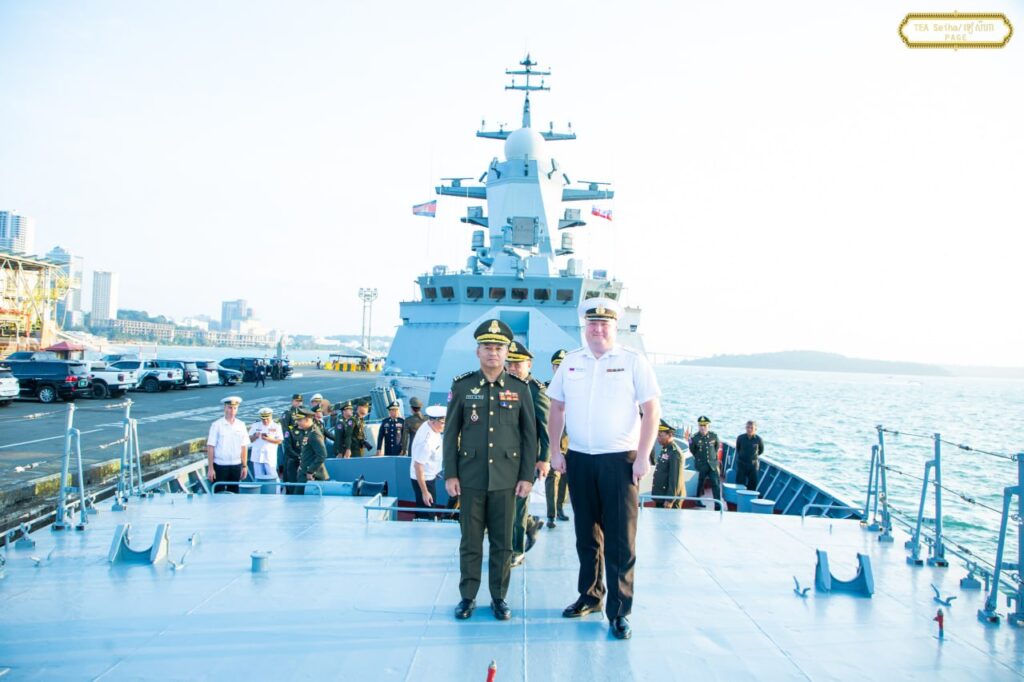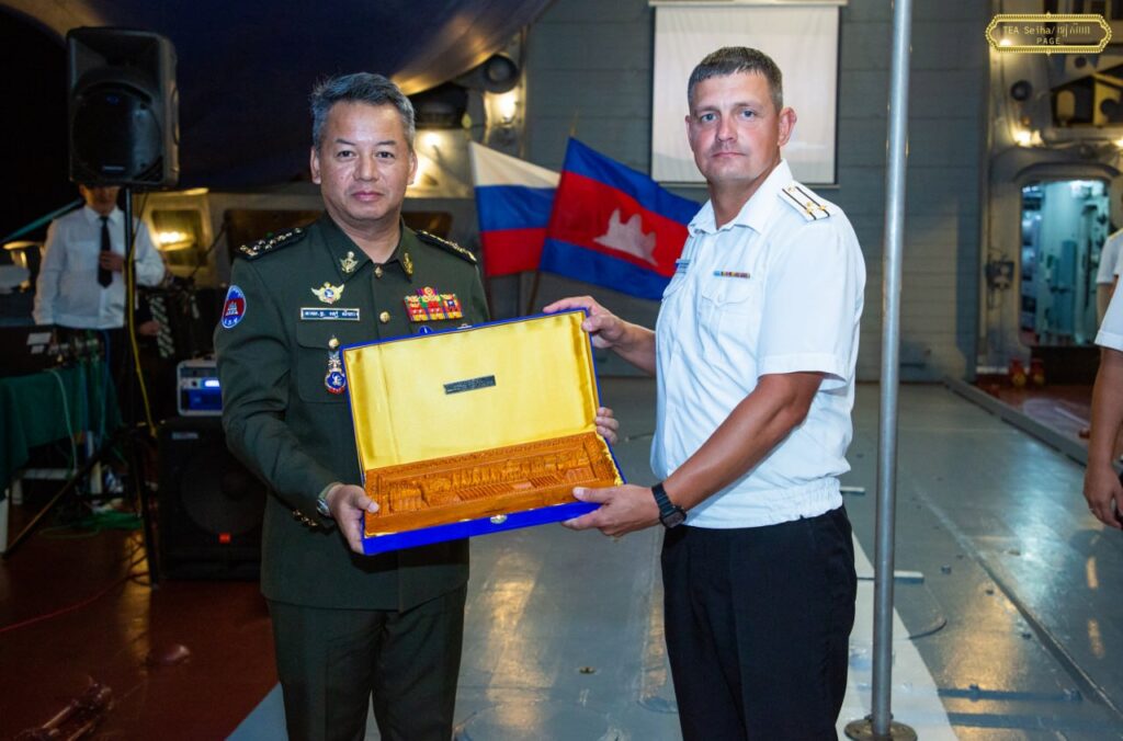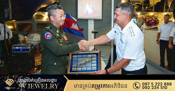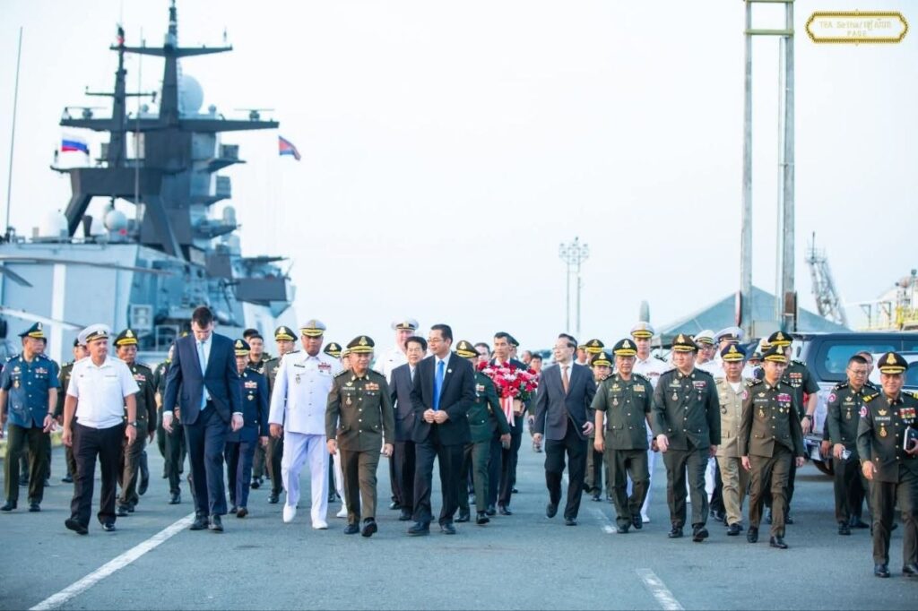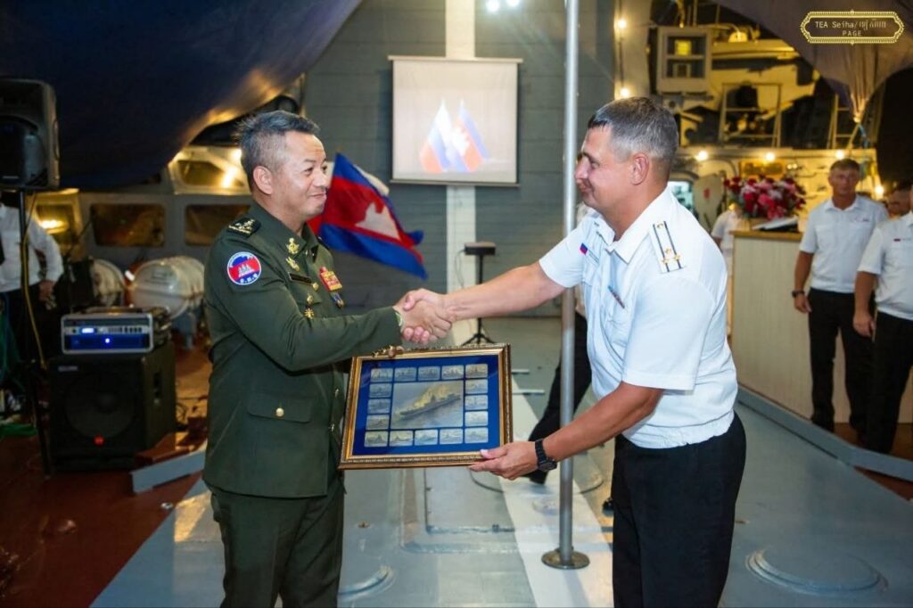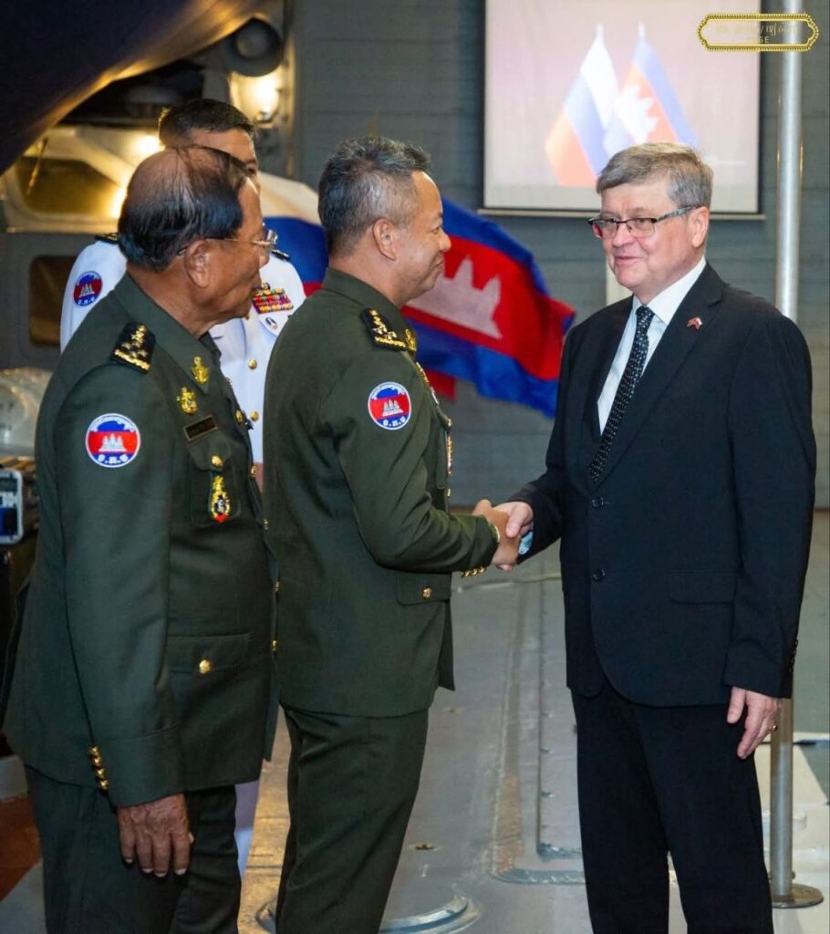 ឯកឧត្តមនាយឧត្តមសេនីយ៍ ទៀ សីហា ឧបនាយករដ្ឋមន្រ្តី រដ្ឋមន្រ្តីក្រសួងការពារជាតិ សូមស្វាគមន៍នាវាចម្បាំងរបស់រុស្ស៊ីចំនួន២គ្រឿង (នាវា Sovershenny លេខ៣៣៣ និងនាវា Rezky លេខ៣៤៣) មកពីកងនាវាប្រចាំតំបន់ប៉ាស៊ីហ្វិកនៃកងទ័ពជើងទឹកសហព័ន្ធរុស្ស៊ី ដែលបានចូលចតនៅកំពង់ផែស្វយ័តក្រុងព្រះសីហនុ ដើម្បីបំពេញទស្សនកិច្ចរយៈពេល៣ថ្ងៃនៅកម្ពុជា ជាមួយនាវិកសរុបប្រមាណ ២៦២នាក់ នាថ្ងៃទី៧ ខែមេសា ឆ្នាំ២០២៦ នៅកំពង់ផែស្វយ័តក្រុងព្រះសីហនុ។