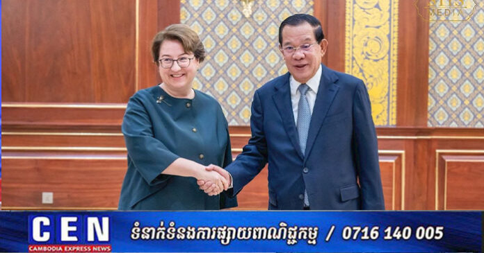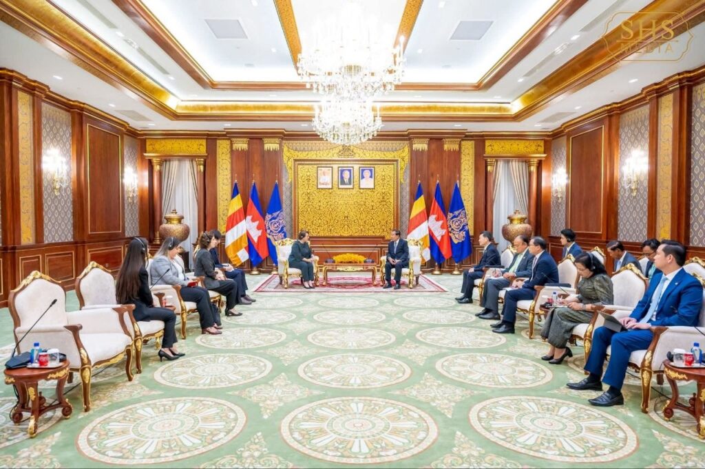 របស់កម្ពុជានៅក្នុងបញ្ហាព្រំដែន កម្ពុជា-ថៃ។សម្ដេចតេជោក៏ឆ្លៀតពន្យល់អំពីបញ្ហាព្រំដែនរវាងកម្ពុជា និងថៃដែលលោកជំទាវបានជ្រាបផងដែរជាពិសេសគឺជំហររបស់កម្ពុជាក្នុងការរក្សានូវបទឈប់បាញ់ឱ្យបានយូរអង្វែង និងការដោះស្រាយបញ្ហាដោយសន្តិវិធីតាមរយៈការចរចា។