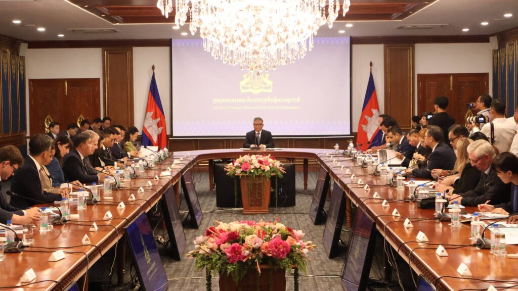 ភ្នំពេញ៖ ឯកឧត្តមសន្តិបណ្ឌិត ឆៃ ស៊ីណារិទ្ធ ទេសរដ្ឋមន្ត្រីទទួលបន្ទុកបេសកកម្មពិសេស និងជាអនុប្រធានប្រចាំការ នៃគណៈកម្មការចំពោះកិច្ចប្រយុទ្ធប្រឆាំង ការឆបោកតាមប្រព័ន្ធបច្ចេកវិទ្យា ហៅកាត់ថា គ.ប.ឆ.ប នៅថ្ងៃទី០៨ ខែមេសា ឆ្នាំ២០២៦នេះ បានធ្វើបទបង្ហាញពីច្បាប់ស្ដីពីការប្រឆាំងការឆបោកតាមប្រព័ន្ធបច្ចេកវិទ្យា ជូនបណ្ដាអង្គទូត និងអង្គការអន្តរជាតិ នៅក្នុងប្រទេសកម្ពុជា។