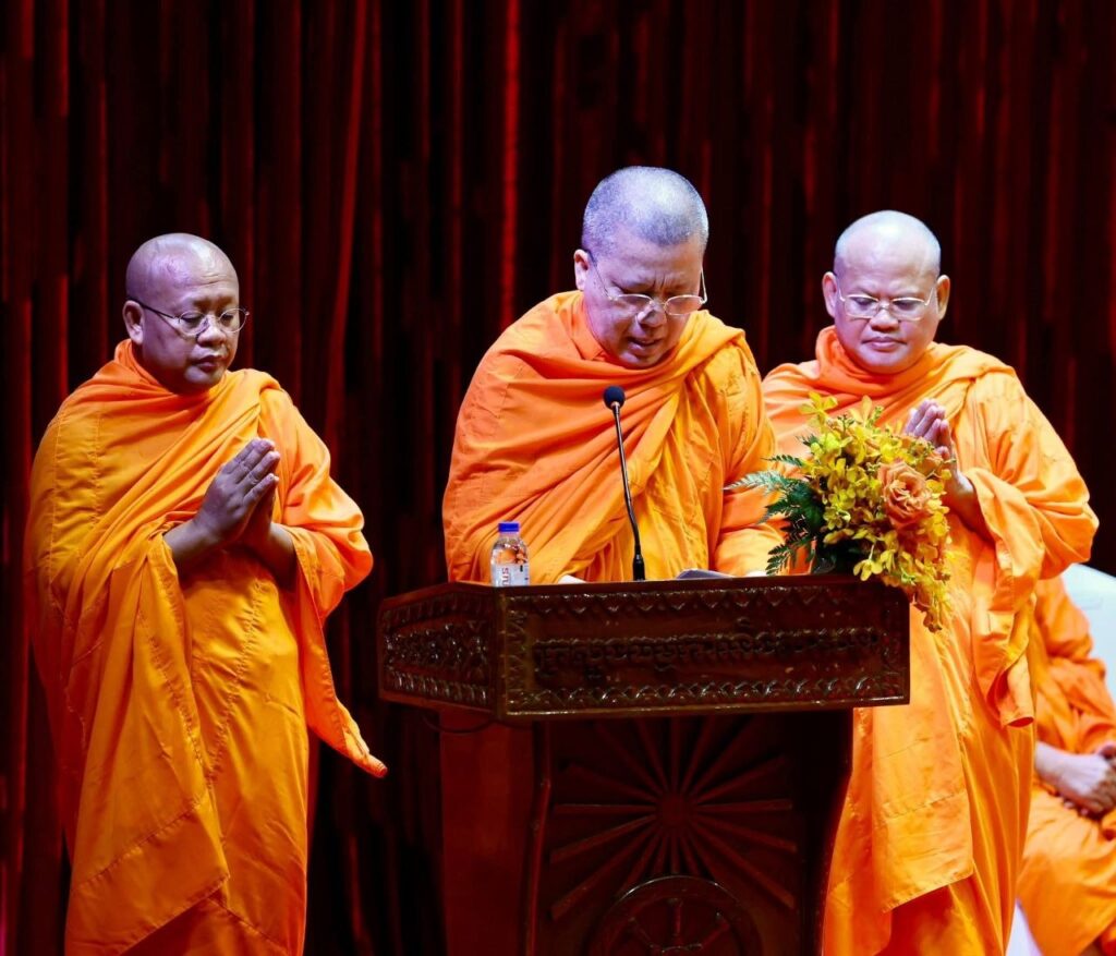 បន្ទាប់ពីស្តាប់ការអានព្រះរាជសារថ្វាយព្រះពរ និងព្រះរាជសាររបស់ ព្រះករុណាព្រះបាទសម្តេចព្រះបរមនាថ នរោត្តម សីហមុនី ព្រះមហាក្សត្រ នៃព្រះរាជាណាចក្រកម្ពុជា រួចមក សូមថ្លែងអំណរព្រះគុណ សម្តេចព្រះមហាសង្ឃរាជទាំងពីរគណៈ សម្តេចព្រះសង្ឃនាយក និងសូមកោតសរសើរនិងវាយតម្លៃខ្ពស់ ចំពោះក្រសួងធម្មការនិងសាសនាដែលបានសហការចាត់ចែងរៀបចំ ទិវាព្រះពុទ្ធសាសនាអន្តរជាតិនេះឡើង ក្នុងគោលបំណងរំលេចឱ្យឃើញអំពីតួនាទីព្រះពុទ្ធសាសនា ដើម្បីចូលរួមចំណែកកសាងពិភពលោកមួយប្រកបដោយសន្តិភាព សាមគ្គីភាព និងការអភិវឌ្ឍប្រទេសទាំងក្នុងវិស័យ នយោបាយ សេដ្ឋកិច្ច សណ្តាប់ធ្នាប់សង្គមវប្បធម៌ និងសាសនា។ ការប្រារព្ធទិវាព្រះពុទ្ធសាសនាអន្តរជាតិ ក្រោមប្រធានបទ ពង្រឹងសាមគ្គីធម៌ ជំរុញសន្តិភាព តាមរយៈមាគ៌ាព្រះពុទ្ធសាសនានាឆ្នាំនេះ គឺជាកាលានុវត្តភាពមួយ បង្កើនការយល់ដឹងពីគុណតម្លៃស្នូល និងគោលការណ៍របស់ព្រះពុទ្ធសាសនាក្នុងការចូលរួមថែរក្សាសុខុមាលភាពសង្គម មិត្តភាព ភាតរភាព និងសាមគ្គីភាព ដើម្បីជំរុញឱ្យមាននូវសុខសន្តិភាពជានិរន្តរ៍សម្រាប់សង្គម និងពិភពលោក។