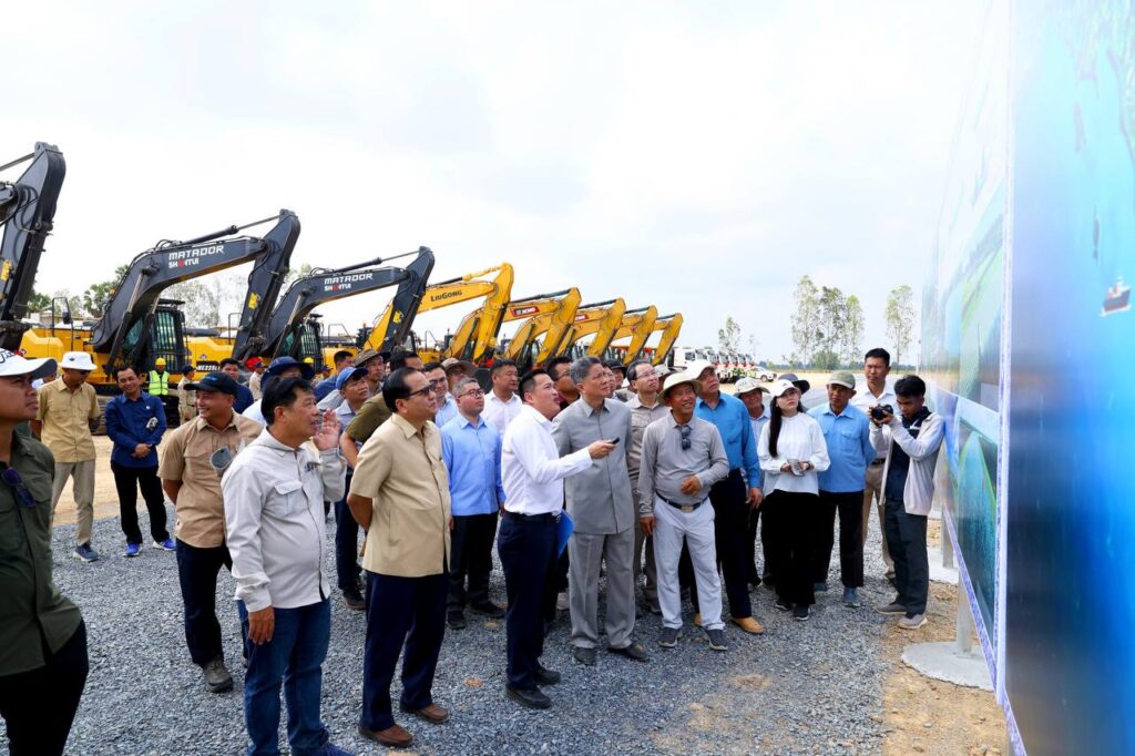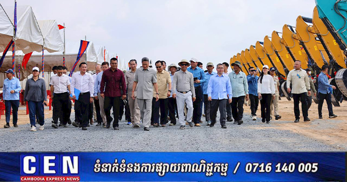 តាកែវ៖ នាព្រឹកថ្ងៃព្រហស្បតិ៍ ទី៩ ខែមេសា ឆ្នាំ២០២៦ ឯកឧត្តម ប៉េង ពោធិ៍នា រដ្ឋមន្រ្តីក្រសួងសាធារណការ និងដឹកជញ្ជូន និងជាប្រធានលេខាធិការដ្ឋាន គណៈកម្មាធិការពិសេស ដើម្បីជំរុញការរៀបចំ និងការអនុវត្តគម្រោងព្រែកជីកហ្វូណនតេជោ បានអមដំណើរ ឯកឧត្តម ស៊ុន ចាន់ថុល ឧបនាយករដ្ឋមន្ត្រី អនុប្រធានទី១ ក្រុមប្រឹក្សាអភិវឌ្ឍន៍កម្ពុជា (ក.អ.ក.) និងជាអនុប្រធានអចិន្ត្រៃយ៍ គណៈកម្មាធិការពិសេស ដើម្បីជំរុញការរៀបចំ និងការអនុវត្តគម្រោងព្រែកជីកហ្វូណនតេជោ ចុះពិនិត្យផ្ទៀងផ្ទាត់ ទីតាំងត្រៀមរៀបចំពិធីបើកការដ្ឋានសាងសង់គម្រោងគ្រប់គ្រងធនធានទឹកចម្រុះហ្វូណនតេជោ កំណាត់ទី២ ដែលមានទីតាំងស្ថិតនៅ ភូមិត្រើយឃ្លោក ឃុំដូងខ្ពស់ ស្រុកបូរីជលសារ ខេត្តតាកែវ។ ពិធីនេះក៏មានការចួលរួមពី ឯកឧត្តម លោកជំទាវ ថ្នាក់ដឹកនាំក្រសួង ក្រសួង-ស្ថាប័នពាក់ព័ន្ធ ក្រុមហ៊ុនសាងសង់ និងមន្រ្តីជំនាញពាក់ព័ន្ធផងដែរ។